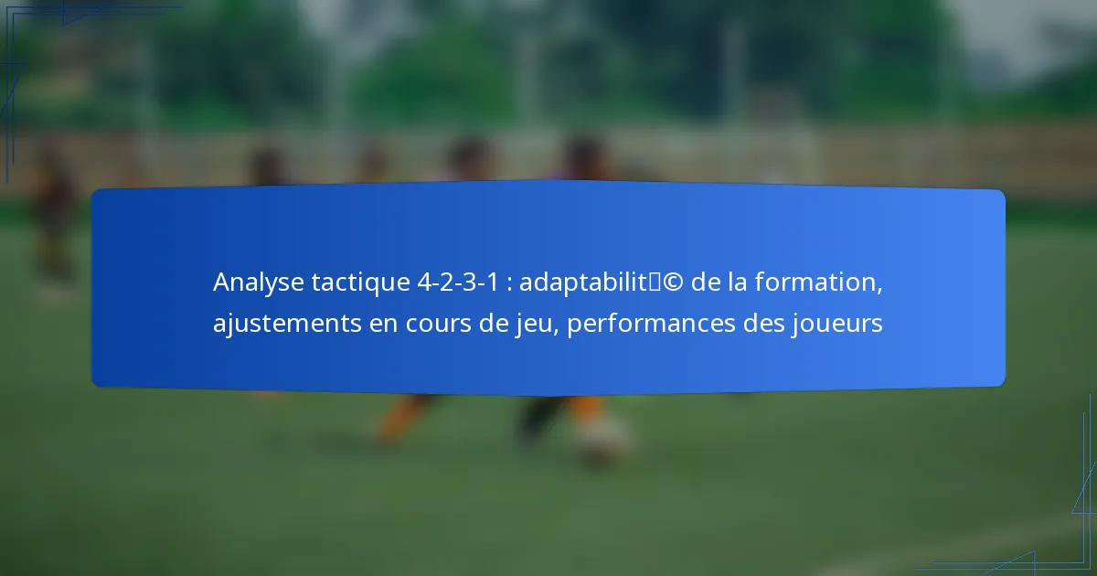 La formation 4-2-3-1 est un dispositif tactique polyvalent dans le football, équilibrant la solidité défensive avec des options offensives. Son adaptabilité permet aux équipes de modifier leurs stratégies en fonction des forces et des faiblesses des adversaires, tout en facilitant les ajustements en cours de match pour répondre à la dynamique du jeu. Cette formation améliore non seulement l’avantage compétitif d’une équipe, mais met également en valeur les performances individuelles des joueurs dans divers rôles sur le terrain.